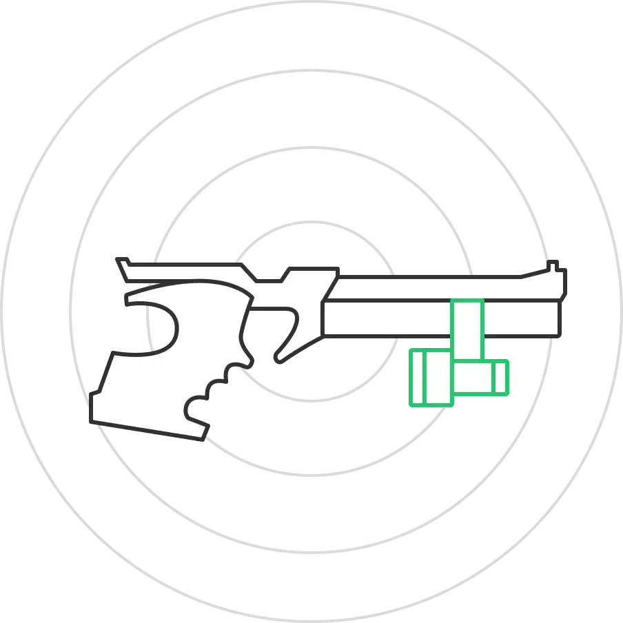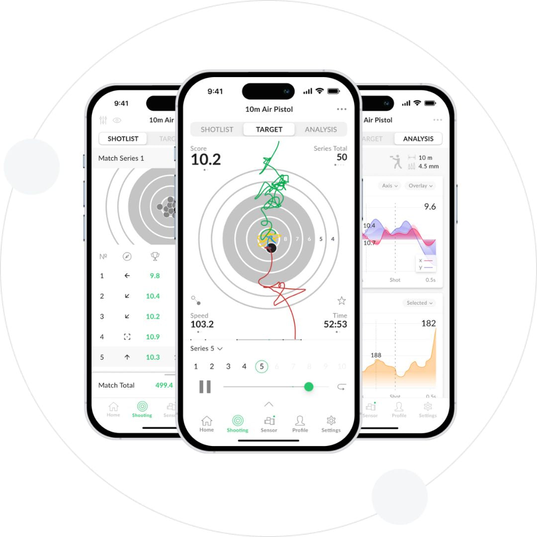 Un sensore ottico ad alta precisione segue tutti i movimenti del cannone mentre miri al bersaglio, mentre l'app mostra in tempo reale l'intera traiettoria del punto di mira. Il colpo viene registrato nel momento esatto in cui premi il grilletto.