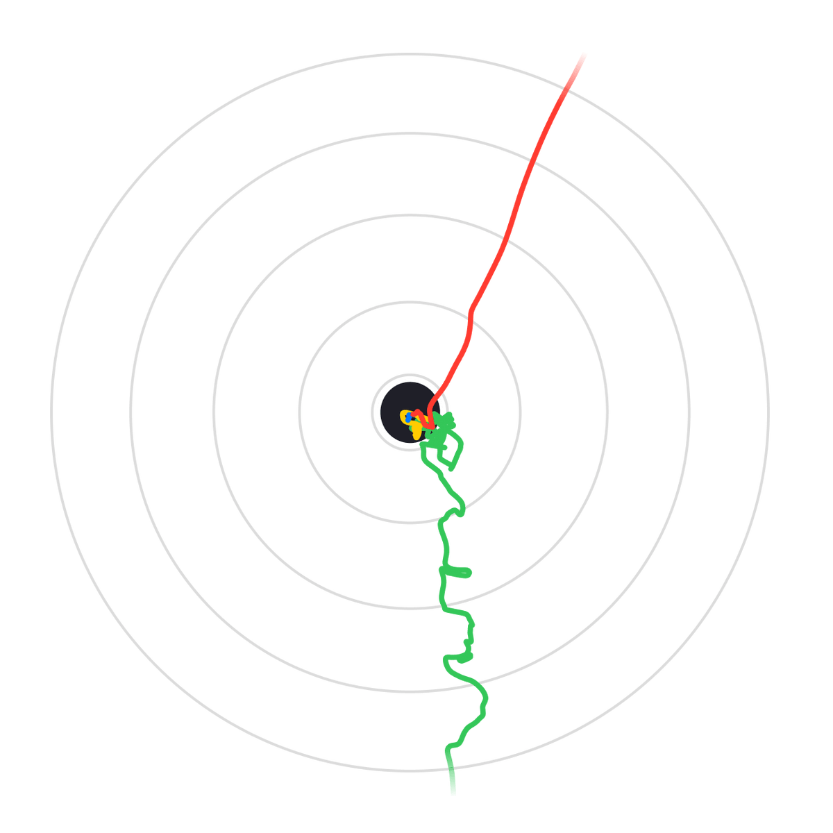 Stabilità ferma e minima dell'area di presa, principalmente nel centro del bersaglio.